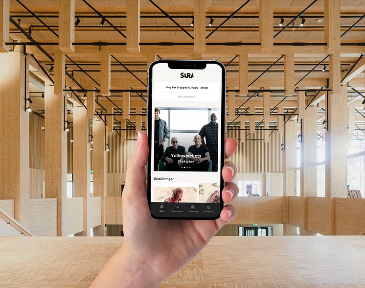 Sara kulturhus-appen ger dig stöd och guidning till alla våra utställningar, evenemang och affärsverksamheter. Finns där appar finns.