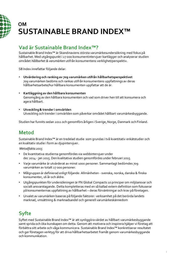 Förklaring till rankingen i Sustainable Brand Index och hur undersökningen har utförts.