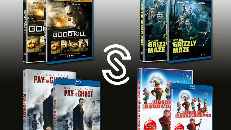 I oktober publicerades fyra nya titlar från Scanbox Entertainment i alla format: Good Kill, Into The Grizzly Maze, Uppdrag: Rädda jultomten och Pay The Ghost.
