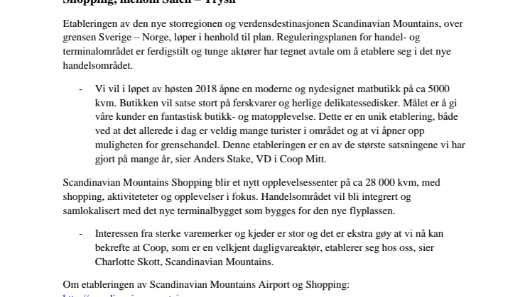 Dagligvareaktøren Coop Mitt etablerer seg på Scandinavian Mountains Shopping, mellom Sälen – Trysil