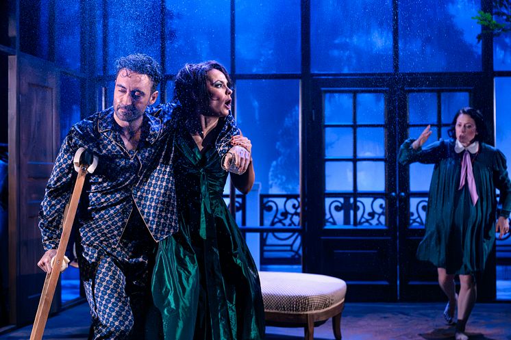 Johan Hafezi, Martina Hemmingsson och Ellen Hennig Öhrström i Teater Västernorrlands Katt på hett plåttak.