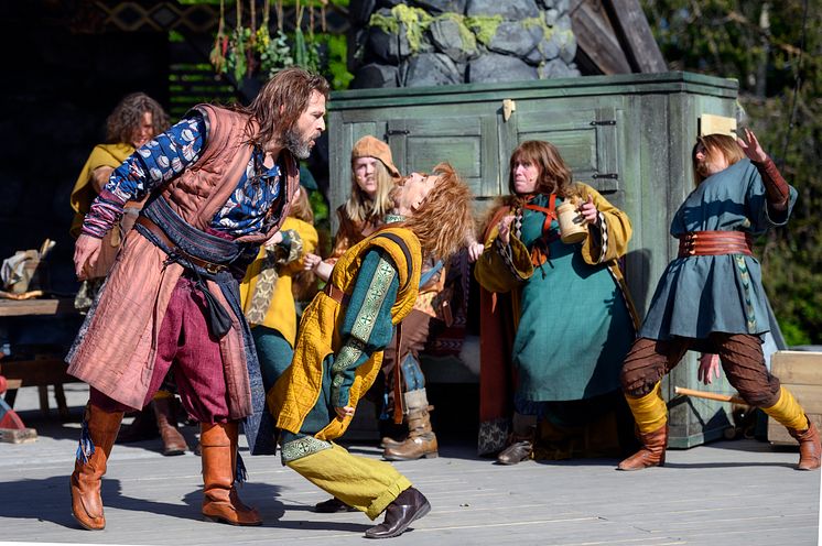 Tobias Aspelin som Mattis och Gisela Nilsson som Borka i Teater Västernorrlands Ronja Rövardotter.