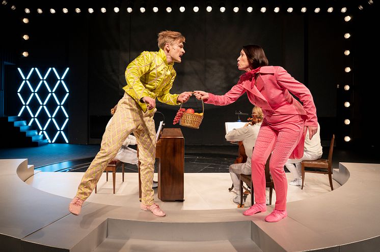 Johan Marenius Nordahl och Ellen Hennig Öhrström i Teater Västernorrlands Två herrars tjänare.