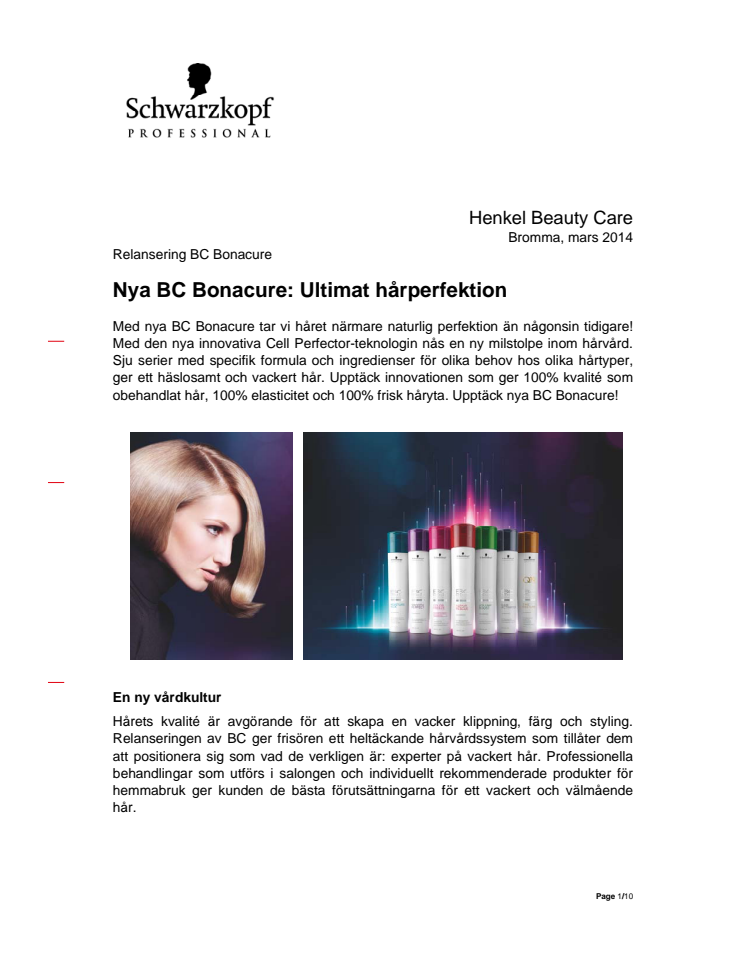 Med nya BC Bonacure tar vi håret närmare naturlig perfektion än någonsin tidigare! Med den nya innovativa Cell Perfector-teknologin nås en ny milstolpe inom hårvård. Sju serier med specifik formula och ingredienser för olika behov hos olika hårtyper, ger ett hälsosamt och vackert hår. Upptäck innovationen som ger 100% kvalité som obehandlat hår, 100% elasticitet och 100% frisk håryta.