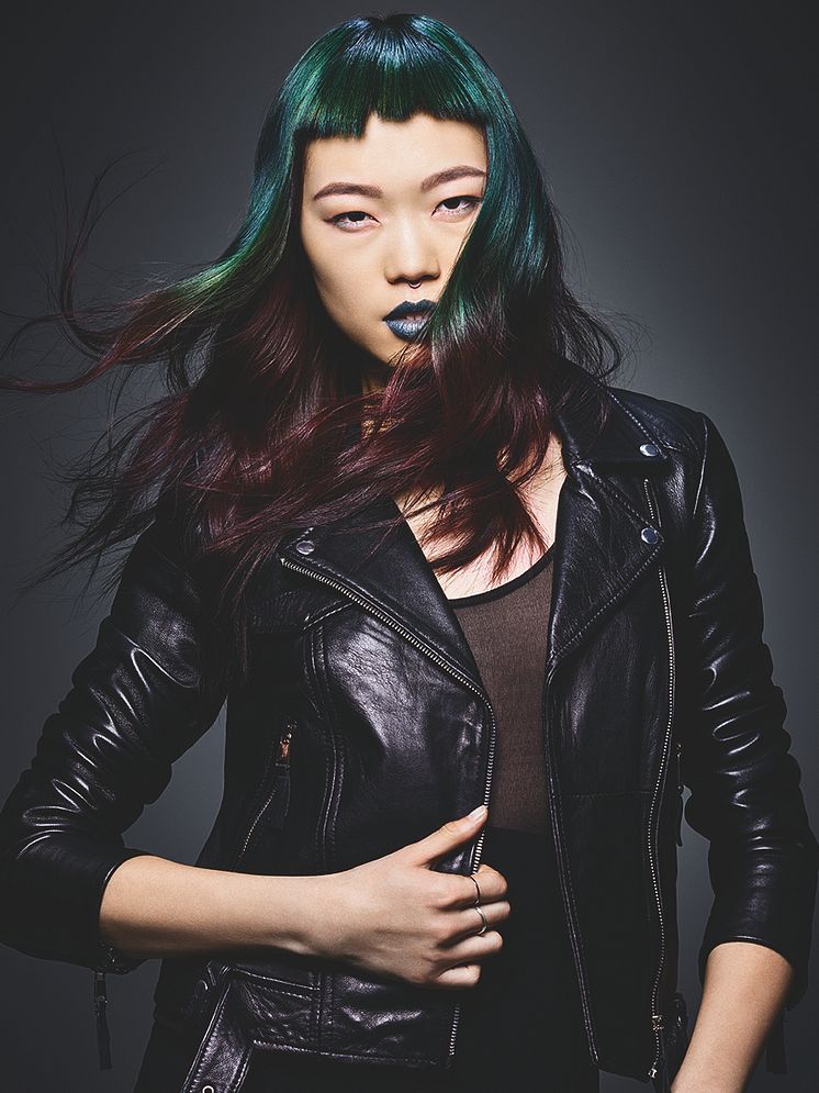 Salon Look. Tänk mystiskt och sofistikerat när Linh väljer en längre styling med naturlig textur i kombination med superkort lugg. Vinrött och mörkgröna toner ramar in ansiktet och skapar en slående stämning med gotiska inslag som är en perfekt övergång till höst/vinter 2018.