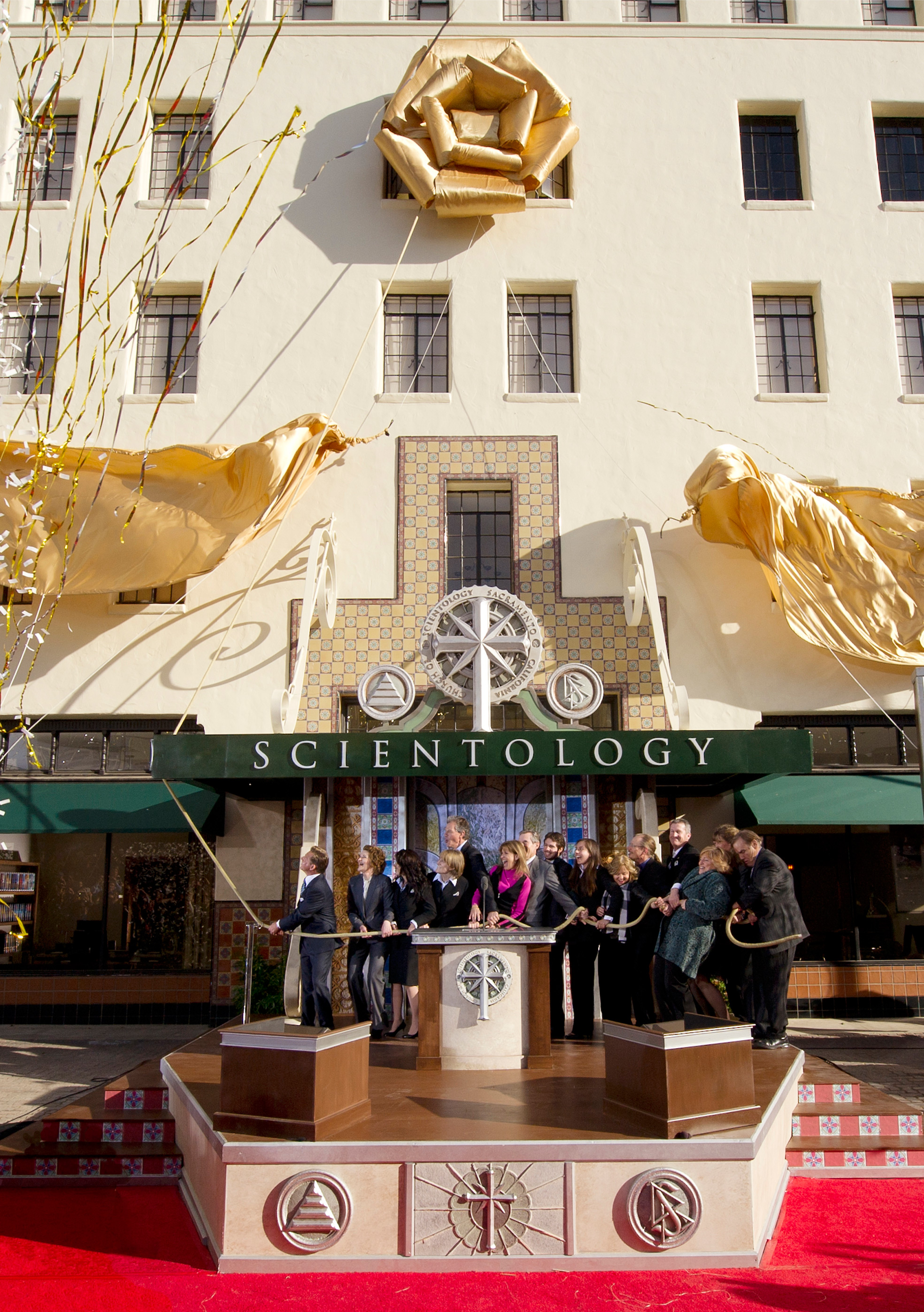 Invigningen av den nya kyrkan leddes av Mr. David Miscavige, styrelseordförande för Religious Technology Center och Scientologi-religionens ecklesististiske ledare. Han ledsagades av Sacramento-kyrkans officiellt inbjudna och församlingsmedlemmar på scenen för klippningen av bandet.