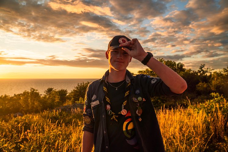 Scouten Albin Haglund, 17 år, anlände till Jamboree22 under lördagen. Han har åkt från Sollentuna till Norra Åsum och han hoppas på en vecka med tusen nya minnen. Först ut är söndagens invigning.