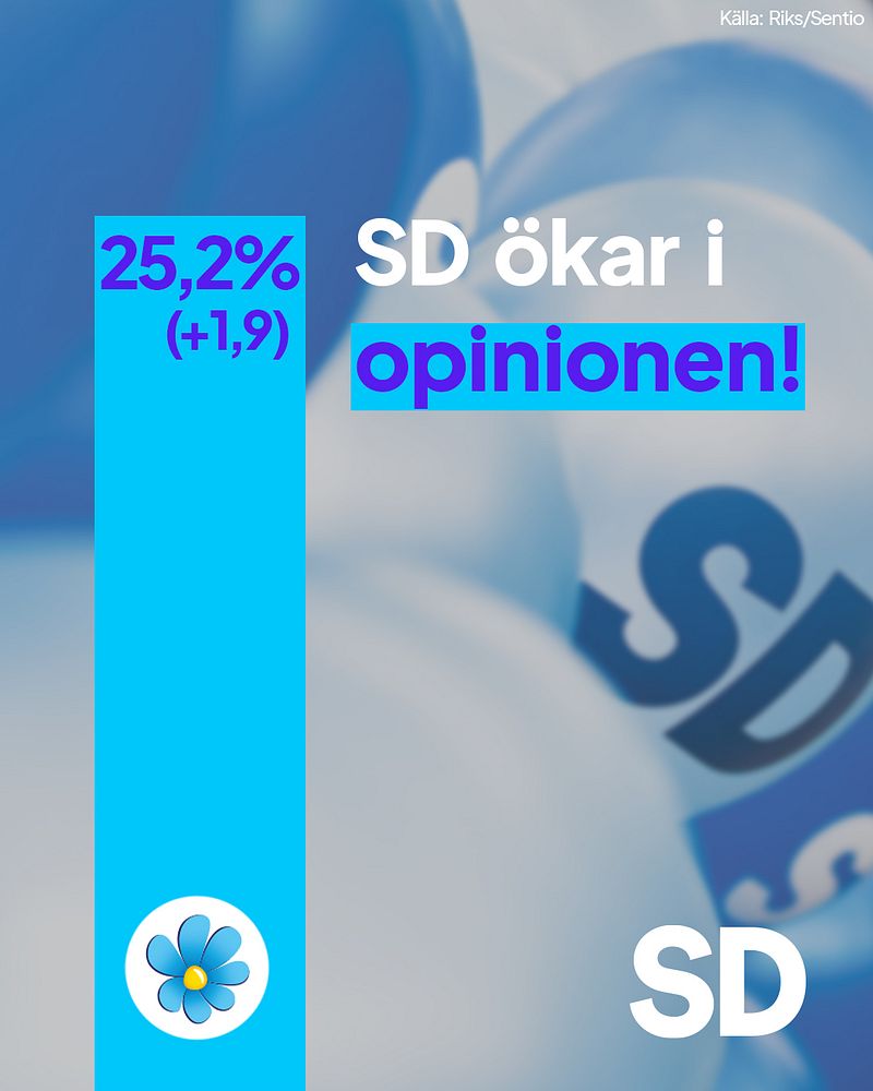 Vi vill såklart påminna om att Sverigedemokraterna fick 25,2 procent i Riks/Sentios senaste opinionsundersökning som kom ut den 26 september. Segertåget har börjat!