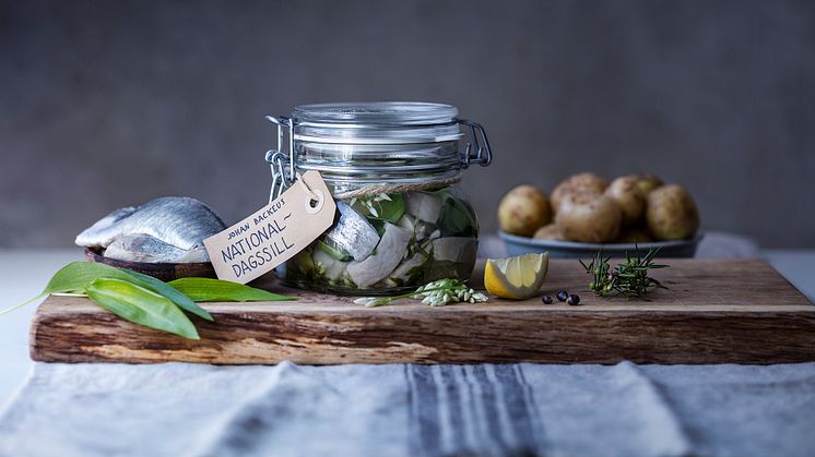 – När jag skapade Nationaldagssillen utgick jag från några av de finaste råvarorna som säsongen har att erbjuda. Nu börjar enbären komma och det finns gott om ramslök, säger Johan Backeus.