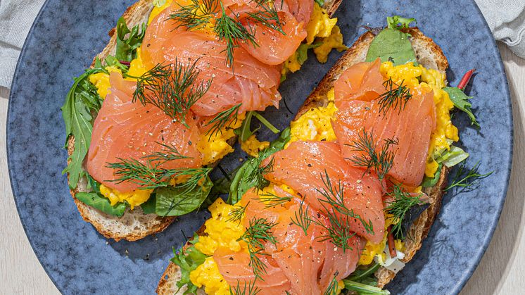 – Att äta fisk till frukost kan ju låta lite udda. Men gravad lax med äggröra kan vara överraskande gott på morgonen, säger Charlotte Rapp, representant för Norges sjömatråd i Sverige.