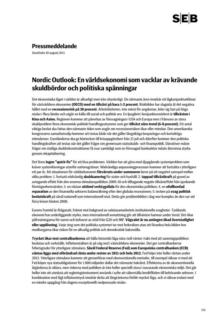 Nordic Outlook: En världsekonomi som vacklar av krävande skuldbördor och politiska spänningar