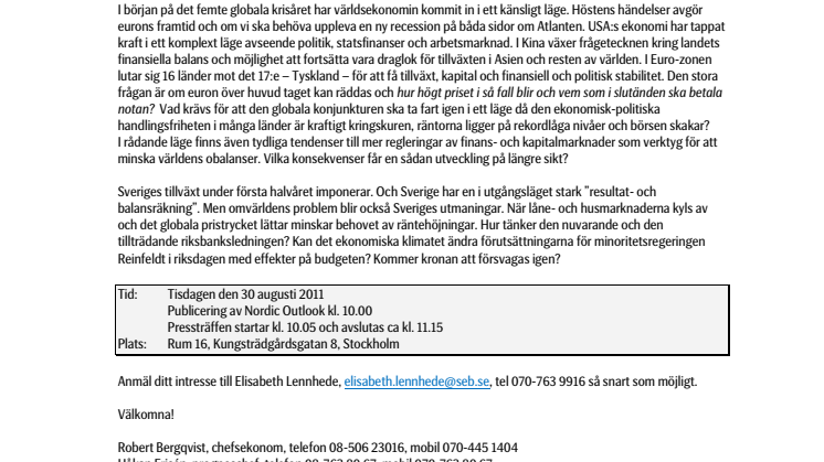 Anmäl ditt intresse till Elisabeth Lennhede, elisabeth.lennhede@seb.se, tel 070-763 9916 så snart som möjligt.