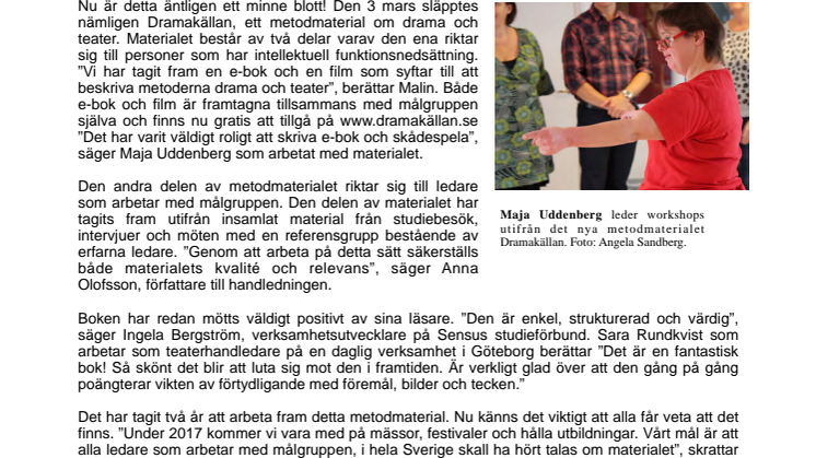 Genom arvsfondsprojektet Dramakällan har ett metodmaterial med samma namn kunnat tas fram. Det handlar om drama och teater för personer med intellektuell funktionsnedsättning och ledare som arbetar med den målgruppen. Materialet är unikt i sitt slag och välkomnas med öppna armar av verksamheter runt om i Sverige.