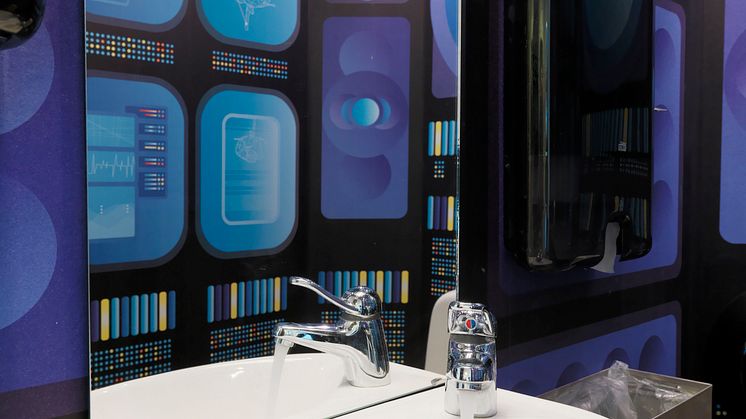 - En perspektivtoalett hjälper dig som besökare att kunna byta perspektiv på tillvaron. Den ena toaletten ger dig micro-perspektiv, med blåklockor och gullvivor som är ända upp till taket. Den andra ger dig macro-perspektiv, där ser du jorden som en avlägsen planet. Om du känner att du verkligen behöver nytt perspektiv, så kan du alltid besöka båda, säger Linda Nordfors.