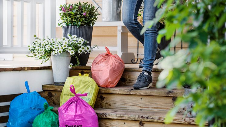 Nu introduceras alltså en ny färgsorteringspåse, avsedd för textilier. Från och med vecka 36 kommer SEVAB Strängnäs Energi att skicka ut en trycksak som villabor i Strängnäs kommun kan hänga på brevlådan för att få hem den rosa påsen. Utskicket kommer att ske allt eftersom under hösten, alla kunder kommer alltså inte att få trycksaken samtidigt.