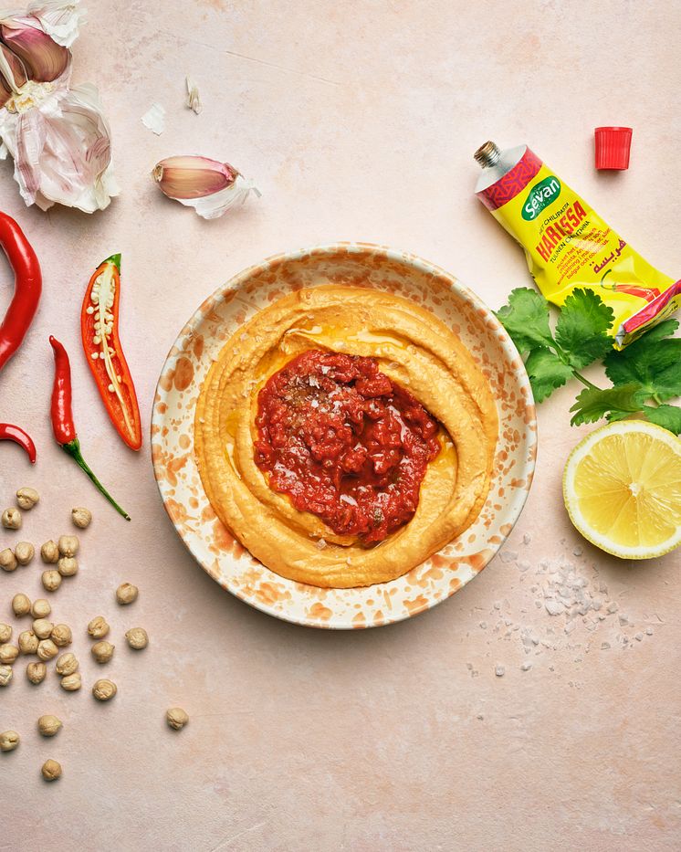 Nu lanserar vi Hummus Harissa – en silkeslen hummus med het harissatopping!