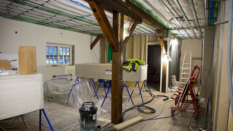 – Det är en stor utmaning att jobba med en byggnad präglad av historia. Ingenting är rakt och magasinet var oisolerat. Inte ens bredden på brädorna är densamma idag som då. Idag är standardbredden 145 millimeter. Här ska det exempelvis vara 140 eller 150 vilket betyder att vi får kapa till dem själva. Det här arbetet kräver riktigt goda snickarkunskaper, säger Peter Nitka, arbetsledare för projektet.