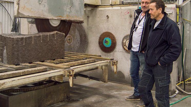 ROMMYS STENVERKSTAD ligger i området Rosendal strax utanför Vallen-tuna. Från verkstaden hörs ett högt och ihållande ljud från arbetet med att polera en stenbänkskiva. Den imponerande stensågen går också på högvarv.