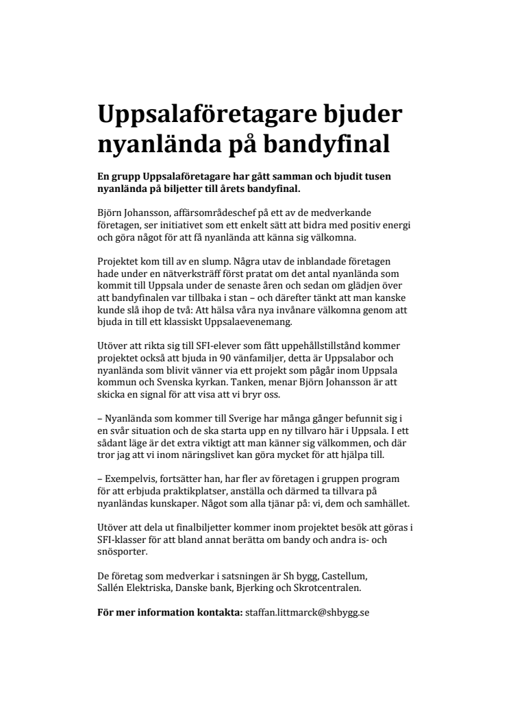 Uppsalaföretagare bjuder nyanlända på bandyfinal