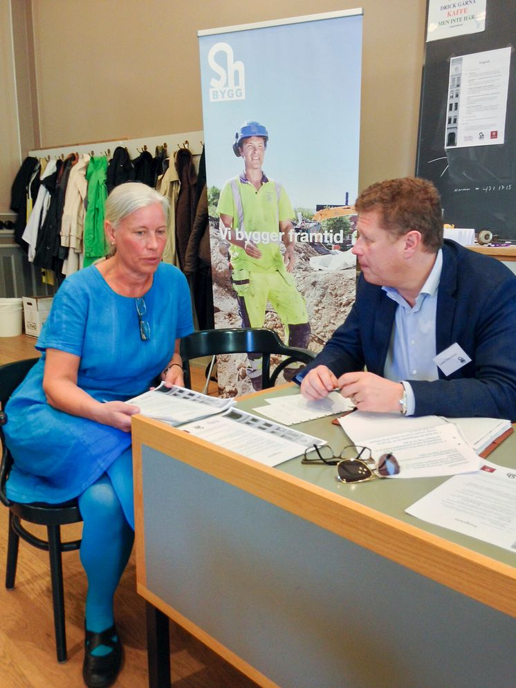 Anneli Sundin från Uppsala kommun beskrev vad som gäller för en äldre fastighet utifrån ett detaljplaneperspektiv. Här diskuterar hon tillsammans med Sh byggs vd Lasse Svensson
