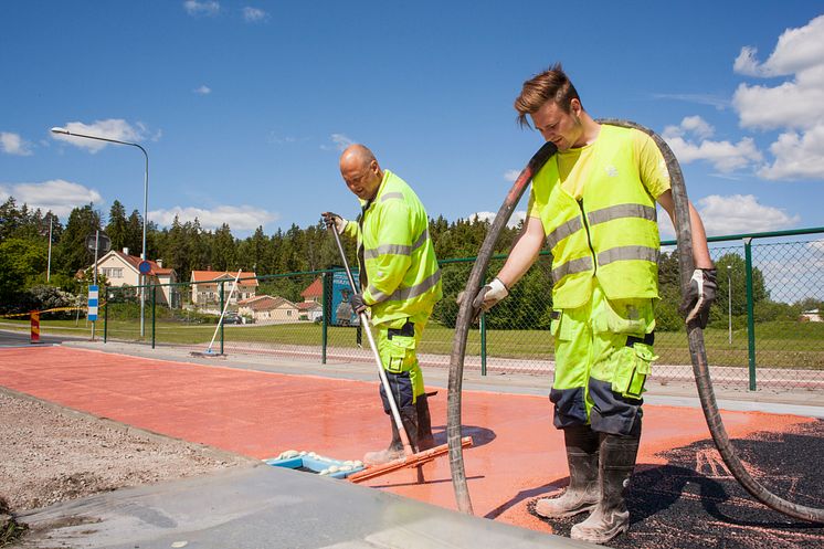 Beläggning har lagts på flertalet körbanor liksom att en busshållplats belagts med Sh Asfalts egen massa S-hard. Eftersom S-hard har en unik sammansättning som gör den idealisk för områden med extremt högt slitage, exempelvis vid busshållplatser. För att det också ska synas tydligt att det är en busshållplats har beläggningen färgats röd.