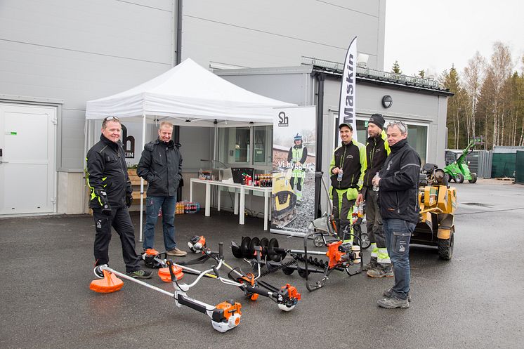 Vädret till trots var det många som tog sig tid att besöka Sh Maskin under invigningen av de nya lokalerna i Östhammar för att kika på maskiner, umgås och käka en och annan korv.