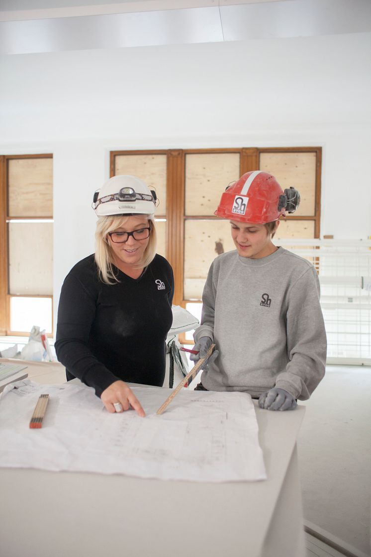 Therese och Calle jobbar under stor tidspress med projektet som är en totalentreprenad.