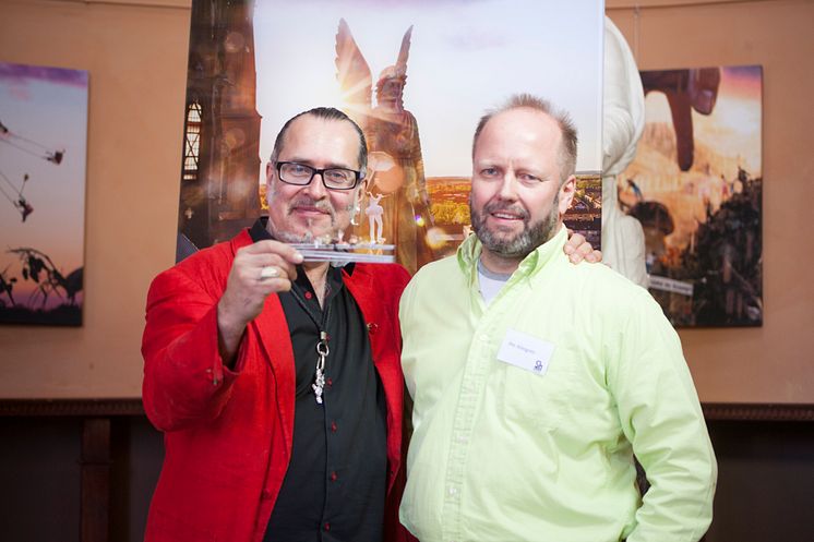 Här ses konstnären Martin Lima de Faria med sina små miniatyrfigurer som användes till konstverket, bredvid Sh byggs Per Almgren.