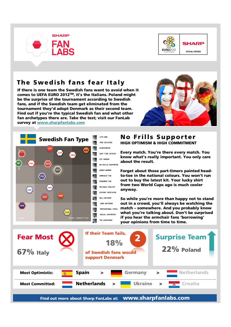 Hur passionerade är de europeiska fotbollsfansen när det gäller deras favoritsport? Som officiell sponsor av EM i fotboll 2012 i Polen och Ukraina kommer Sharp på olika sätt mäta detta. Därför genomförs nu den största undersökningen någonsin – Sharp FanLabs – kring vilka känslor fansen egentligen har när det gäller fotboll.