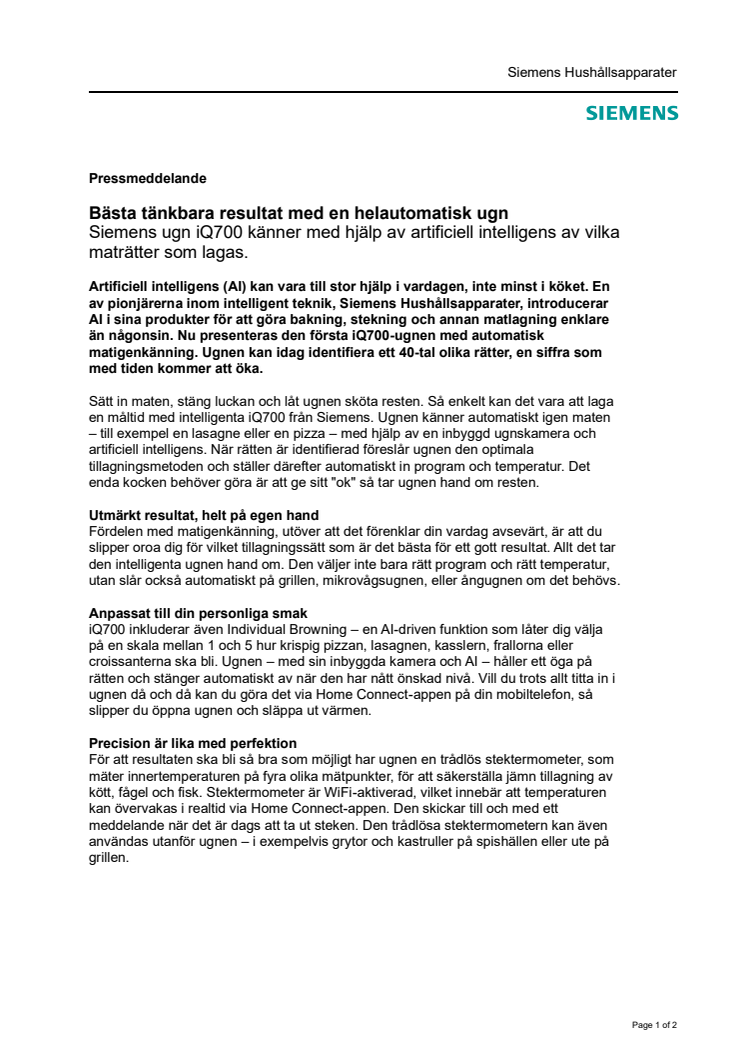Pressmeddelande Siemens iQ700-ugn med automatisk matigenkänning_SE.pdf
