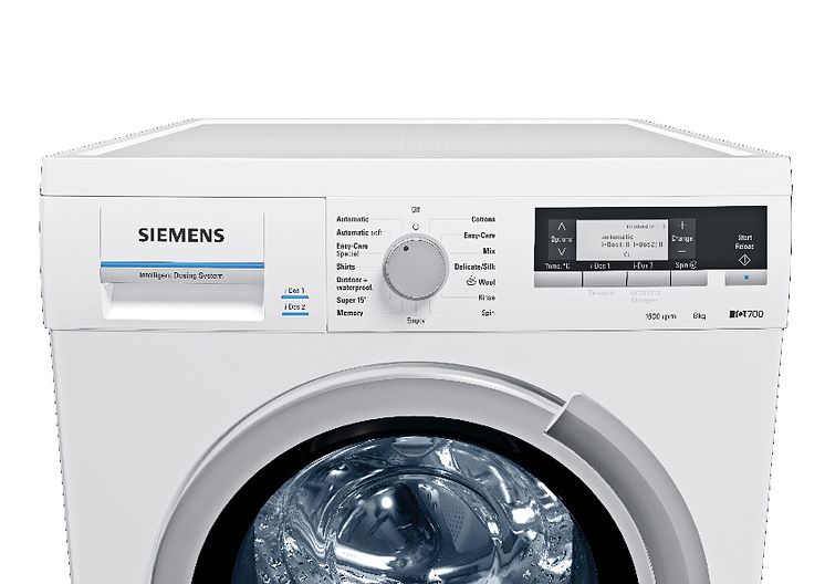 Framtidens tvättmaskin är här! Siemens IQ 700 i-Dos har ett nytt automatiskt system där du bara behöver välja program, lägga i tvätten och trycka på start. Tvättmaskinen sköter det övriga automatiskt. Trots den mycket avancerade tekniken, är den ändå mycket enkel att använda – en tvättmaskin som tvättar efter dina individuella behov.