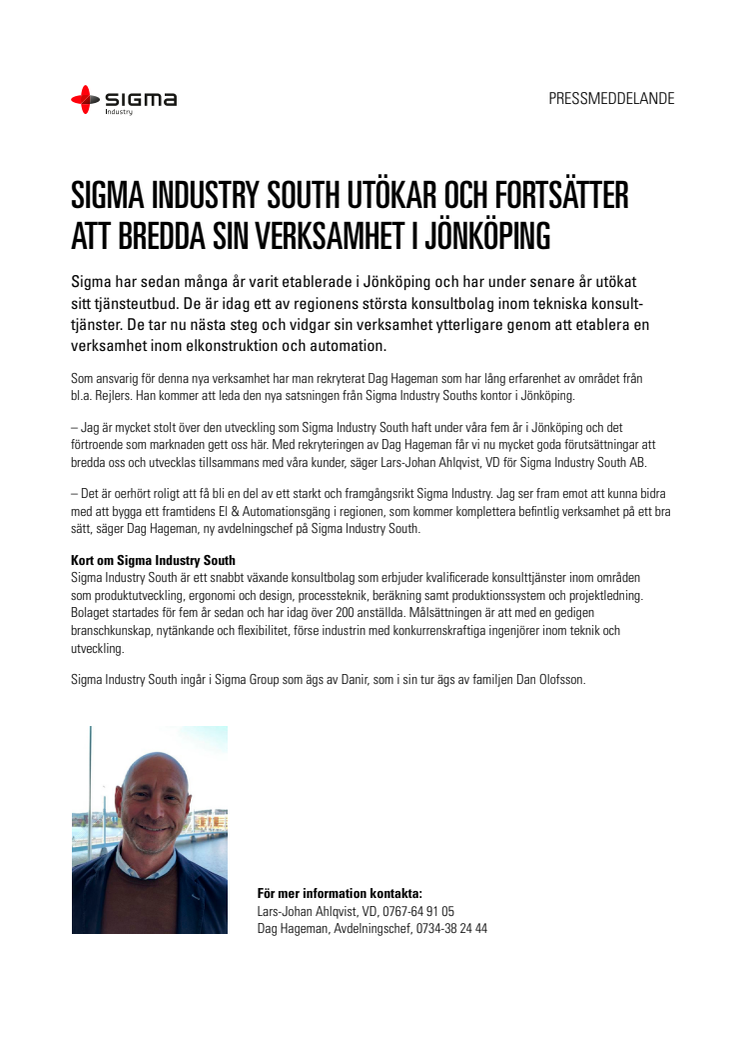 • Sigma Industry South utökar och fortsätter att bredda sin verksamhet i Jönköping
