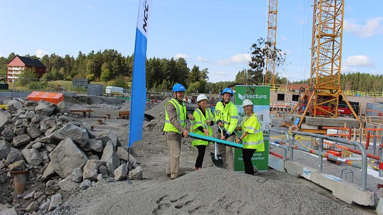 Vid elvatiden på onsdagsförmiddagen gick projektet officiellt in i sin nästa fas när spadtaget togs för det nya trygghetsboendet samt äldreboendet Aleris Silvertorget Plaza. Vectura Fastigheters VD Susanne Ekblom hälsade alla inbjudna välkomna och fortsatte sedan berätta om Vectura och projektet i Sigtuna stadsängar. Vecturas samarbetspartner Aleris som kommer att driva äldreboendet fortsatte sedan med affärsområdeschef för äldreboende Kristin Ahne. Vidare hölls tal av Mattias Monbäck avdelningschef på NCC samt Karsten Bjärbo ordförande i äldre- och omsorgsnämnden i Sigtuna kommun.