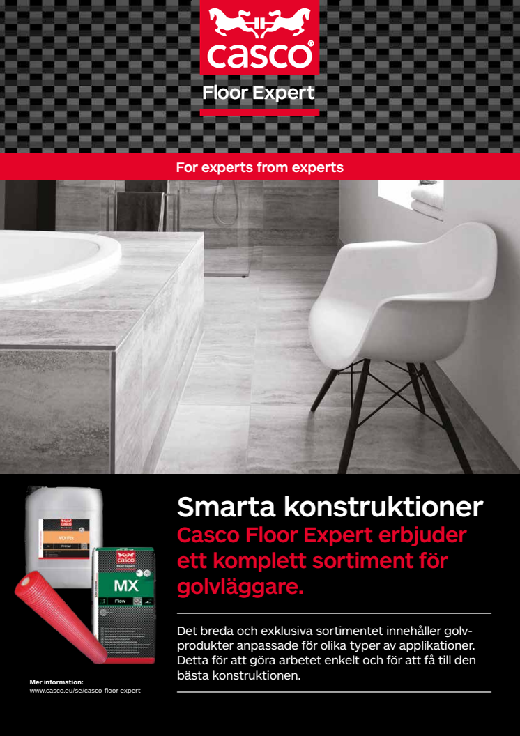 Casco Floor Expert erbjuder ett komplett sortiment för golvläggare och plattsättare. Det breda och exklusiva sortimentet innehåller golvprodukter anpassade för olika typer av applikationer. Detta för att göra arbetet enkelt och för att få till den bästa konstruktionen.