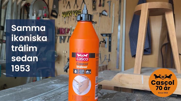 Cascos ikoniska trälim Cascol fyller 70 år. Mycket har hänt sedan Cascol gjorde entré med den numera klassiska orange flaskan på den svenska marknaden 1953, men kvaliteten och populariteten av Cascol trälim lever kvar och fyller samma funktion nu som då. Det är trälim som fungerar lika bra i träslöjden i skolan, för hemmafixaren som för proffs på bygget och finsnickaren.
