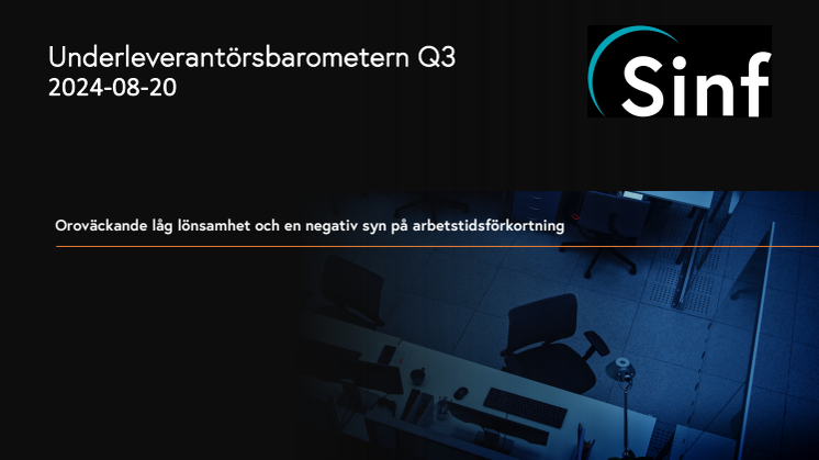 Sedan 2007 mäter Sinf kvartalsvis, omsättningsförändring, förväntad orderingång, kompetensförsörjning samt ställer aktuella frågor till svenska underleverantörer. Undersökningen har genomförts via enkäter på internet under perioden 2024-06-17—07-17.