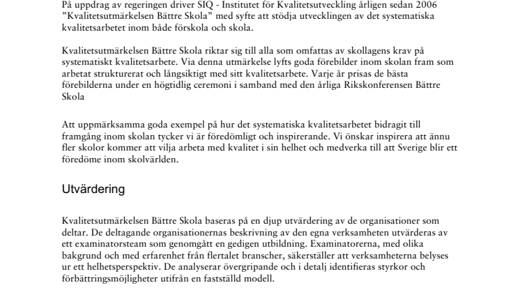En detaljerad beskrivning av utvärderingsprocessen och mer information finns på www.siq.se och www.battreskola.com.