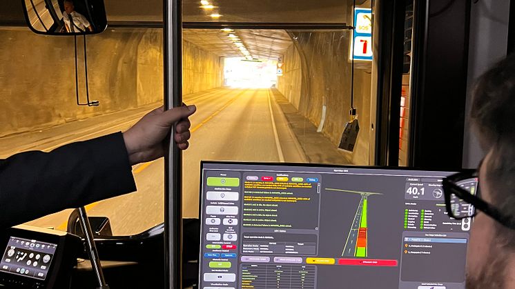 Det autonoma förarsystemet läser av omgivnarna tio gånger per sekund med hjälp av lidar, radar, ultrasensorer och kameror. En förare kommer att sitta med i bussen under pilotprojektet och kommer alltid vara redo att ingripa