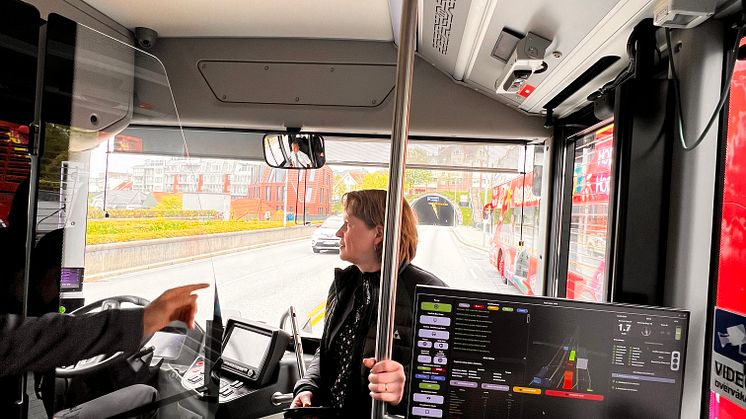 Mänsklig förare sitter med i bussen
