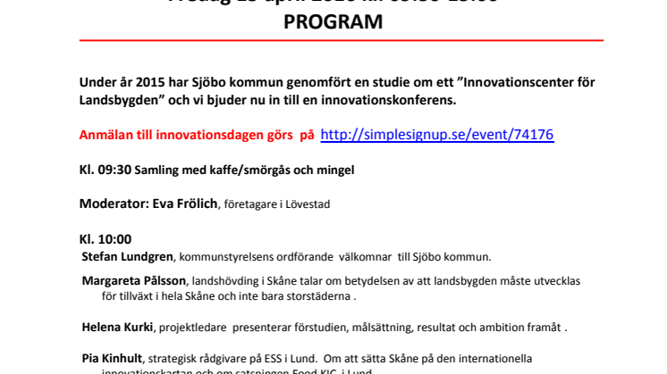 Medverkar gör bl a; Landshövding Margareta Pålsson, Länsstyrelsen i Skåne