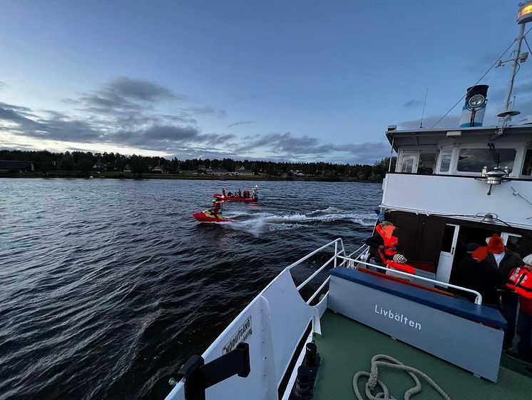 Evakuering av passagerare när ångaren Östersund gått på grund.