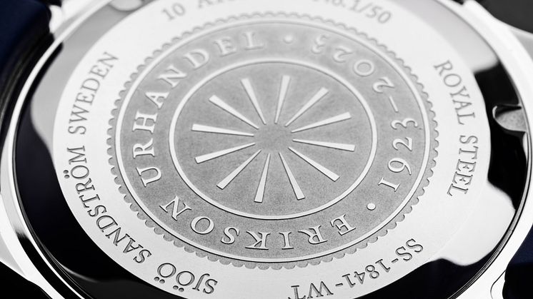 När Erikson Urhandel i Sundbyberg fyller 100år så uppmärksammas det genom att vi tillsammans släpper en limiterade utgåva av Royal Steel Worldtimer 41mm. Tavlan är omarbetad och nu med en solborstad blå urtavla med vintage superluminova, datumet är placerat kl 6 samt texten Sundbyberg pryder urtavlan i nederkant. På bezeln har även siffran 10 ersatts mot siffran 100 för att uppmärksamma detta jubileum lite extra. Vi alla på Sjöö Sandström är mycket stolta över resultatet och naturligtvis hedrade över att tillverka denna modell som endast tillverkas i 50st exemplar.