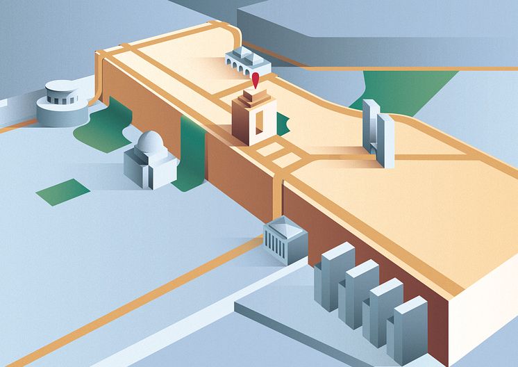 Abstrakt kartillustration över Midtown Stockholm och Diligentias The Corner House, hetaste boendet i Stockholm.