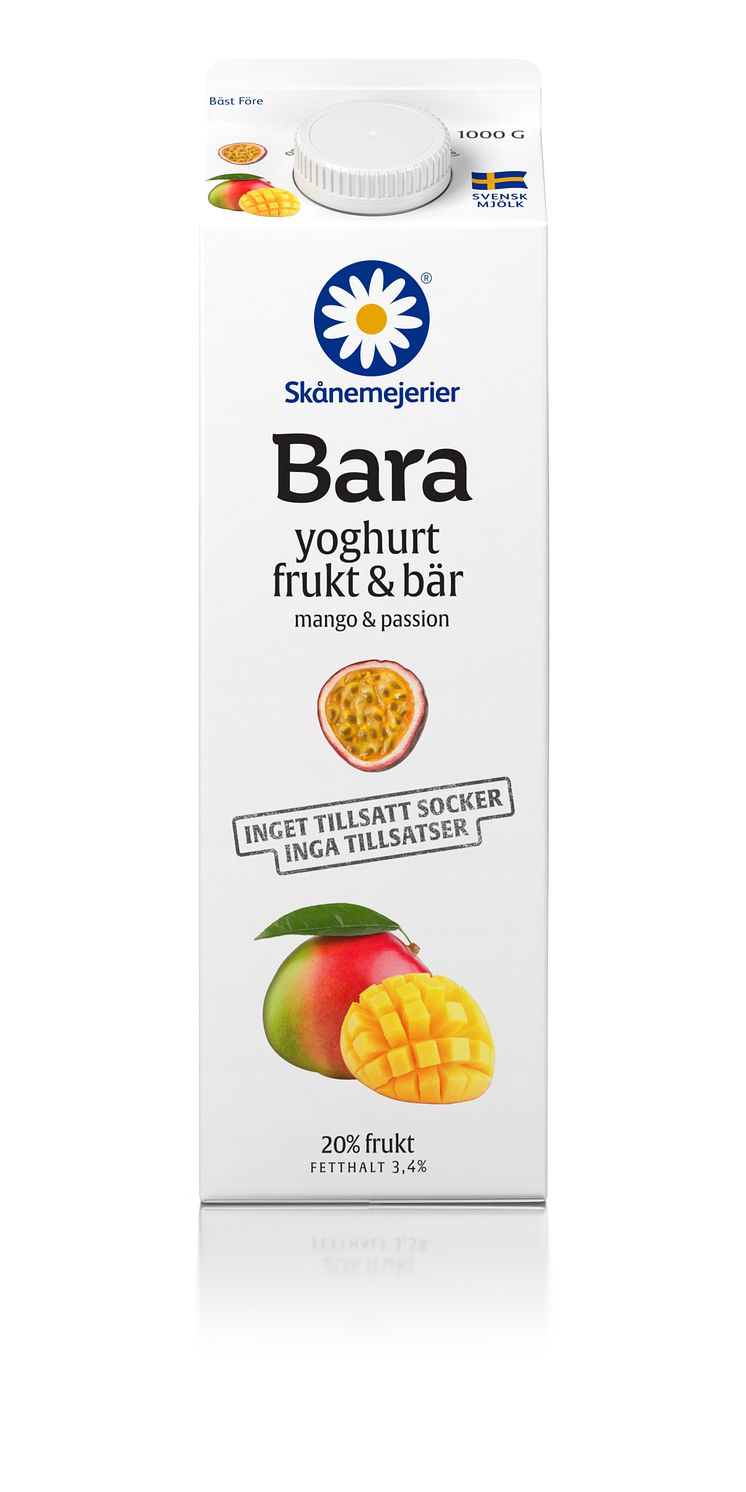 ”Skånemejerier Bara” - Sveriges enda yoghurt utan tillsatt socker eller tillsatser - kommer nu med ny smak av Mango & Passion
