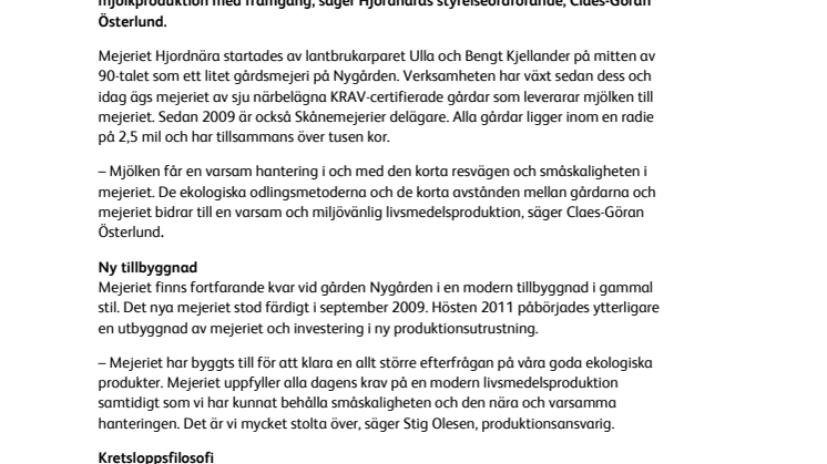 Läs mer om Hjordnära Mejeri på www.hjordnara.se och på Facebook, www.facebook.com/Hjordnara