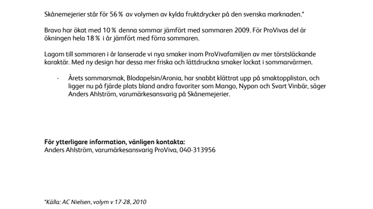 Bravo har ökat med 10% denna sommar jämfört med sommaren 2009. För ProVivas del är ökningen hela 18% i år jämfört med förra sommaren.