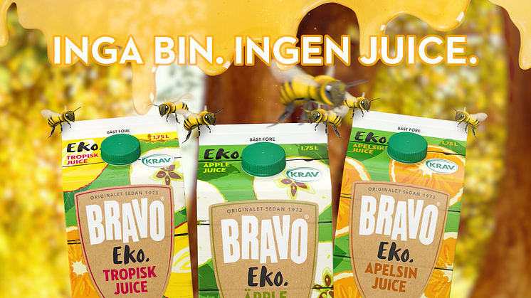 Utan bin, varken honung eller juice. Med en ny kampanj vill Bravo få människor att förstå vikten av pollinerande insekter och kopplingen mellan juice och bin. Ett sätt att hjälpa bina är att välja ekologiska livsmedel eftersom de inte är besprutade.