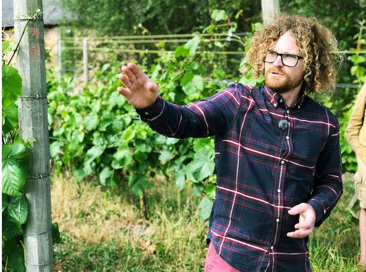 • Vinbonden Victor Dahl på Kullabergs vingård tror på samarbete för att lyfta viner från området. Foto: Anna Lind Lewin.