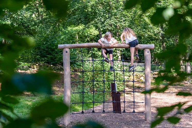 I parken finns flera fina lekområden. Här kan hela familjen klättra, krypa och balansera sig fram.