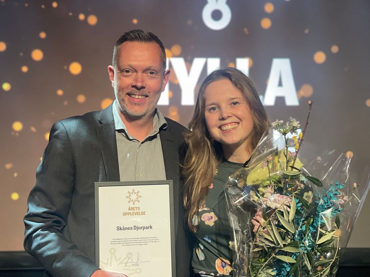 Skånes Djurparks Audun Danielsen och Sara Samuelsson tog emot priset och utmärkelsen för "Årets Upplevelse" på Visit Skånes gala på Amiralen i Malmö.